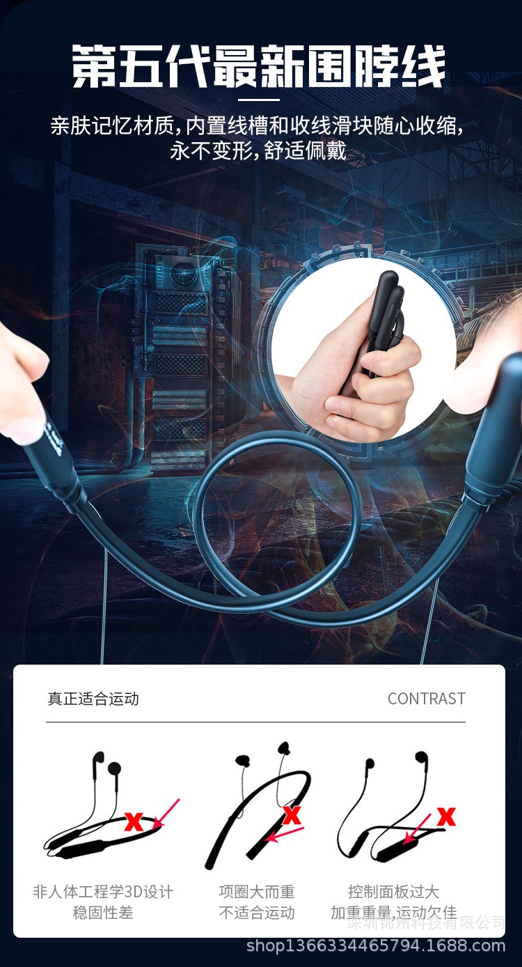 C1N型号愉悦颈挂式蓝牙耳机重低音手机无线耳机半入耳运动立体声挂脖耳机