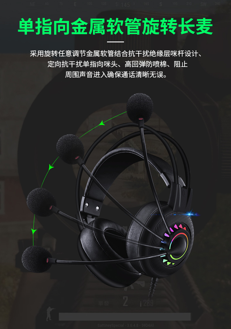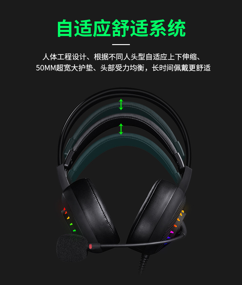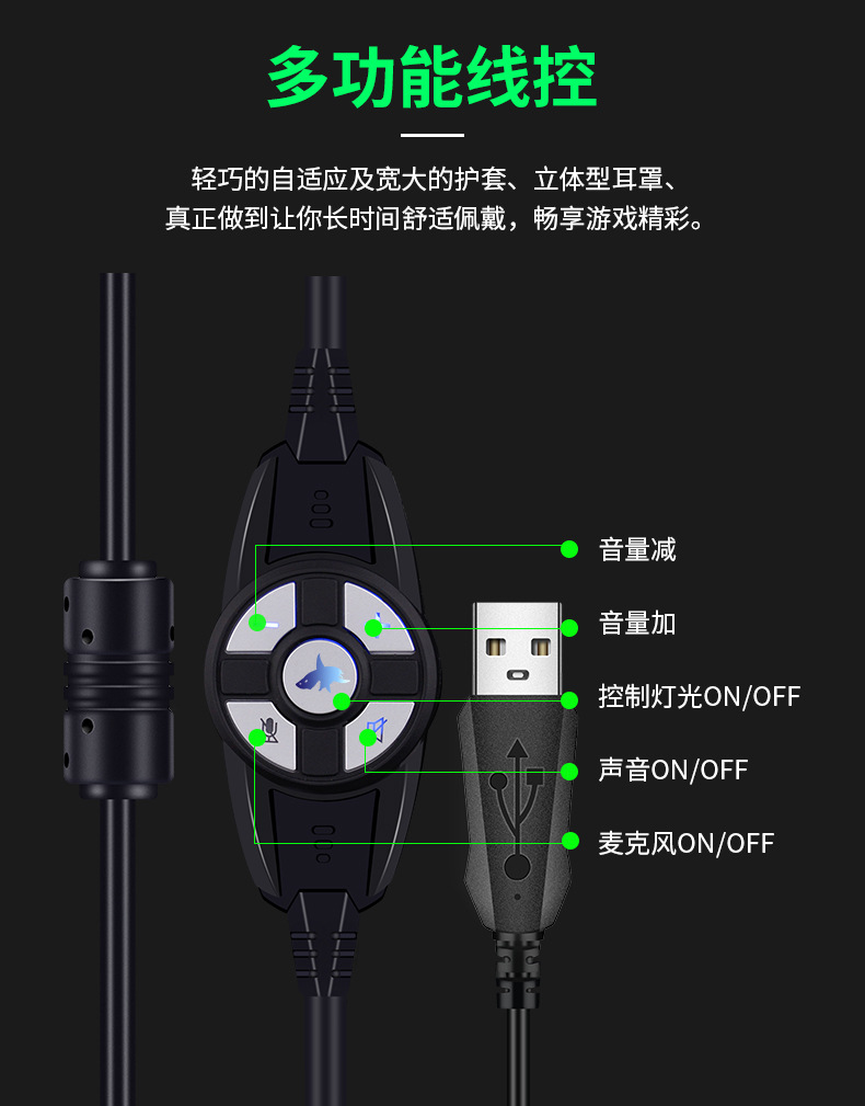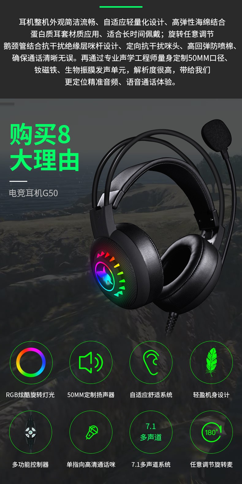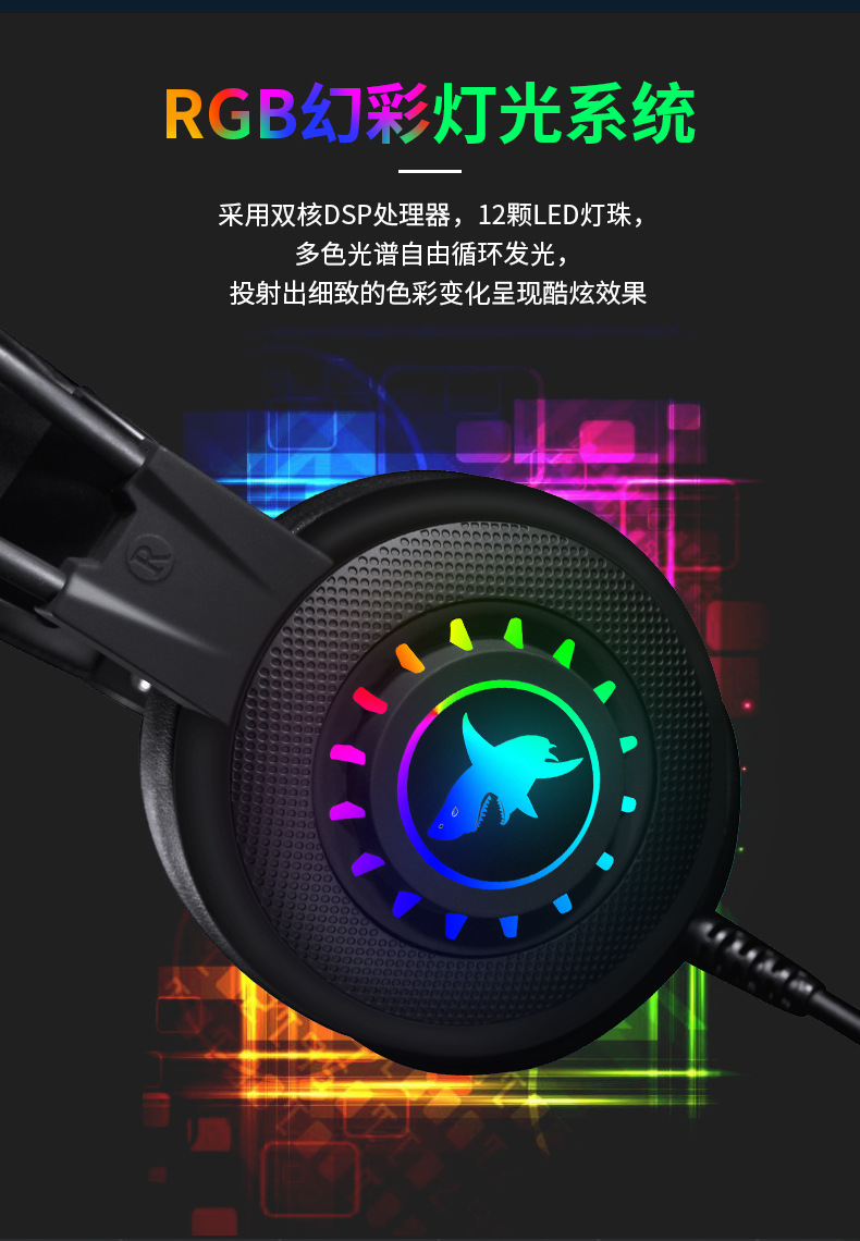G50 model green shark headset wired headset light-emitting live broadcast computer noise reduction game headphones