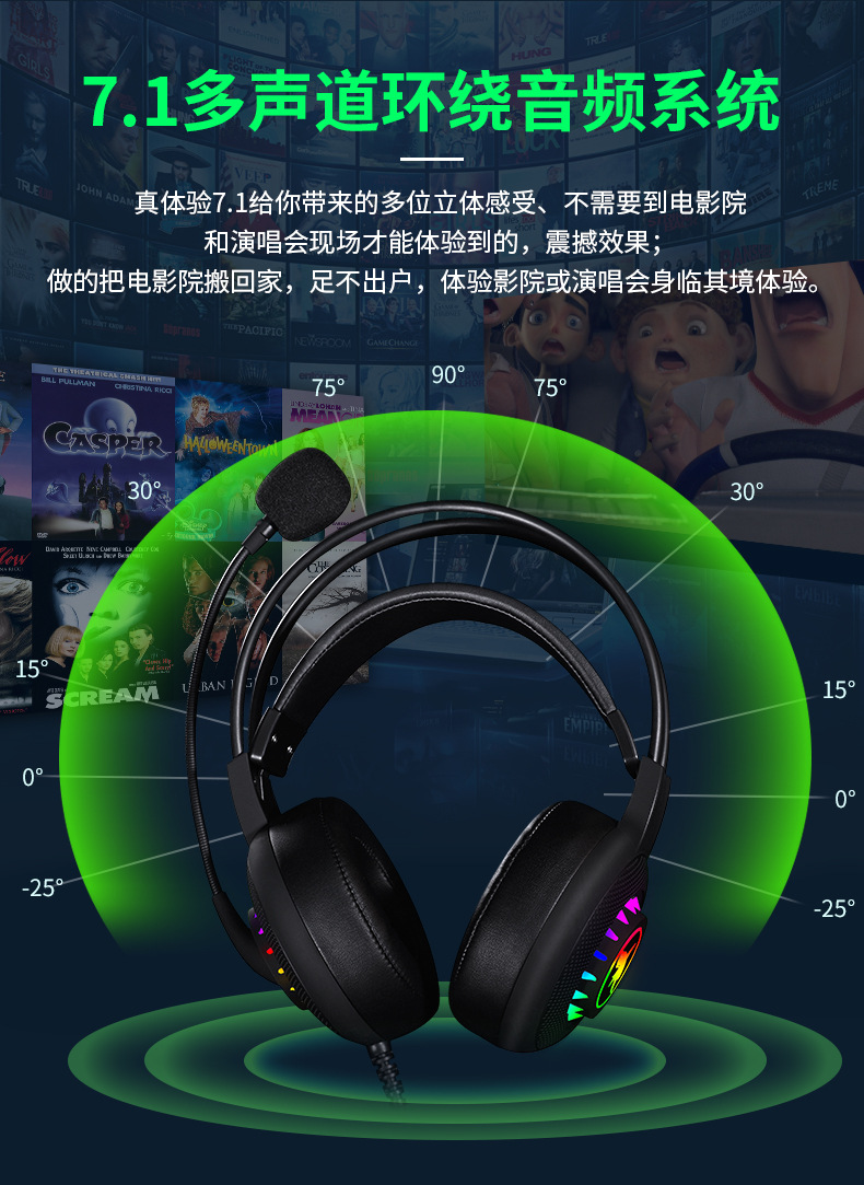 This is a 7.1 esports game headphones, their own operating software, the following is about 7.1 software introduction and software play introduced. Whether you're playing a video game or watching a movie, realistic sound effects can make all the difference, especially with a 7.1-channel speaker or headphone Surround sound, not everyone wants to buy expensive audio equipment. The company's professional virtual 7.1-channel Surround sound enhancement software, the audio engine allows ordinary headphones to simulate a similar 7.1-channel Surround sound field, without having to pay a high price to bring a stunning 7.1 channel surround experience, and users can also adjust and optimize the sound effects, adjust the EQ and so on. The software supports Windows 8,7 and Vista, supports 32-and 64-bit, and provides a multilingual interface that allows users to configure 3D surround sound effects to create a realistic virtual enhanced 7.1 sound field. The software also offers voice and voice options, including bass enhancement, to make the bass sound bigger and more powerful, making it ideal for playing games or watching movies. The enhanced stereo sound is very strong, and it really does make you feel more like you're in that scene in the game, playing call of duty, CS, battlefield, and so on.